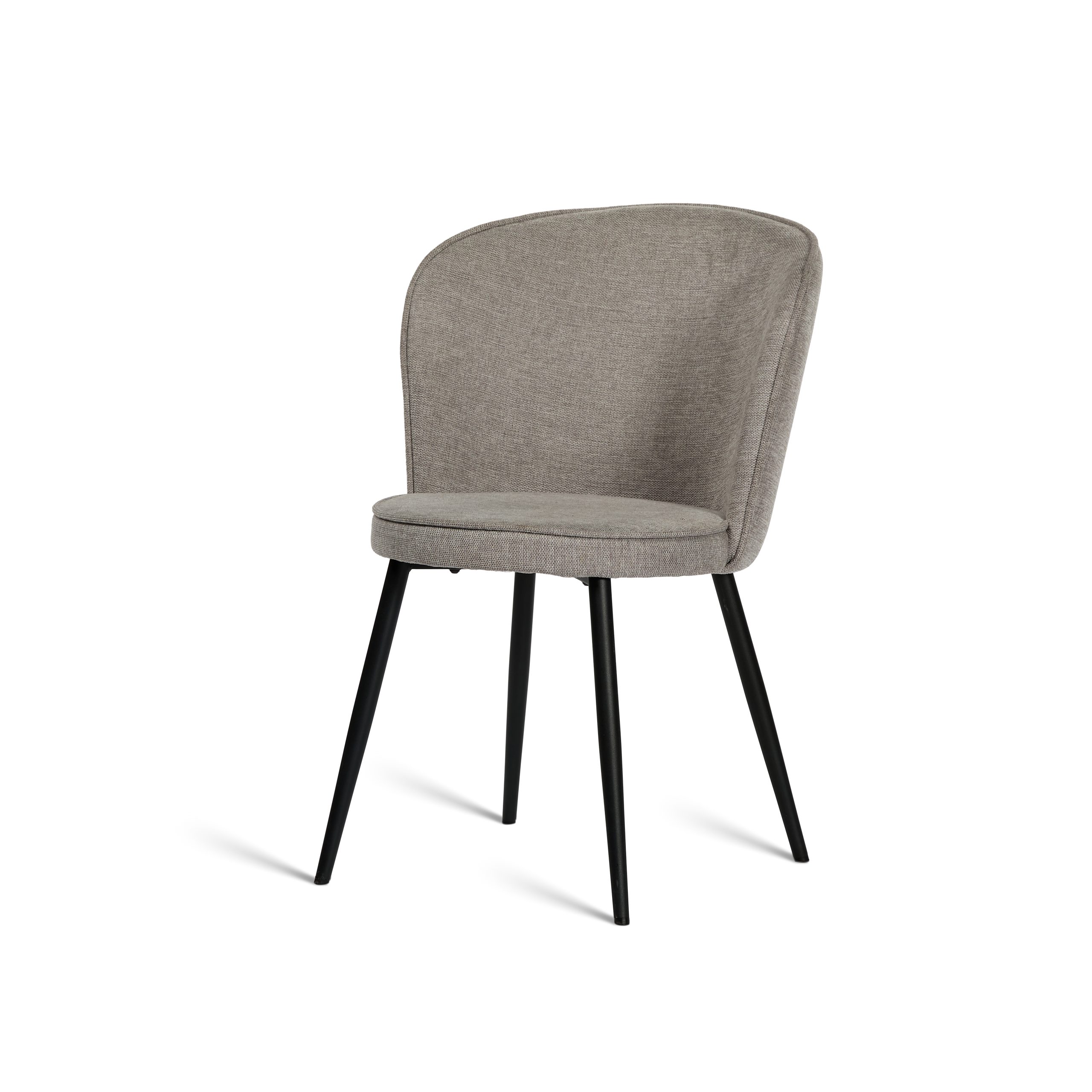 This Pegasus chair features a soft, curved backrest and a plush seat in a calming grey hue. The chair’s slender black metal legs create a minimalist and stylish look on any exhibition stand.