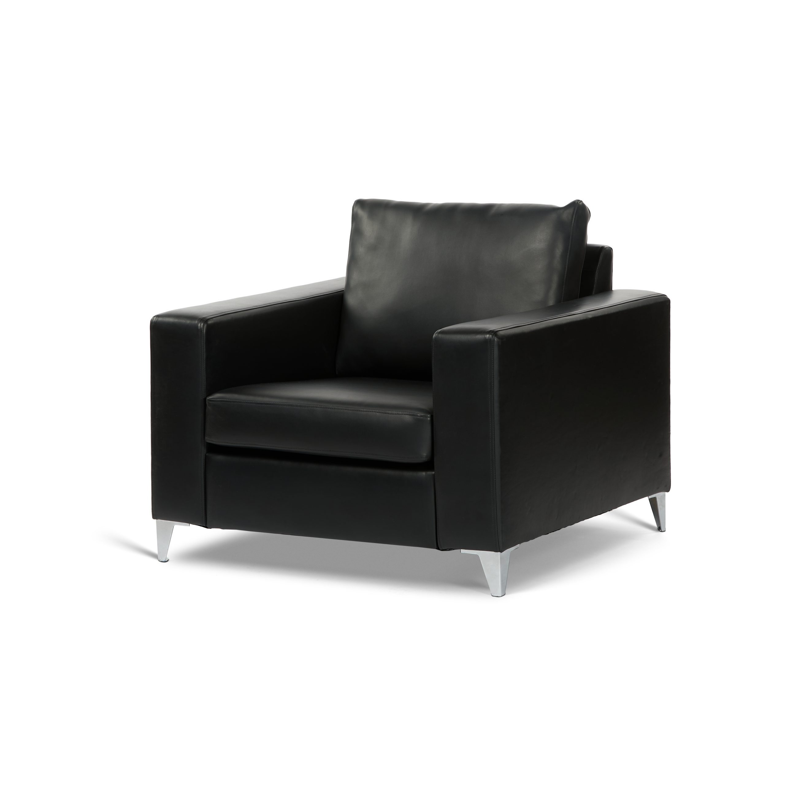 Our Sun Armchair is great for creating a relaxed and comfortable atmosphere. Can be used at any event or exhibition. Available in Black Leather.
